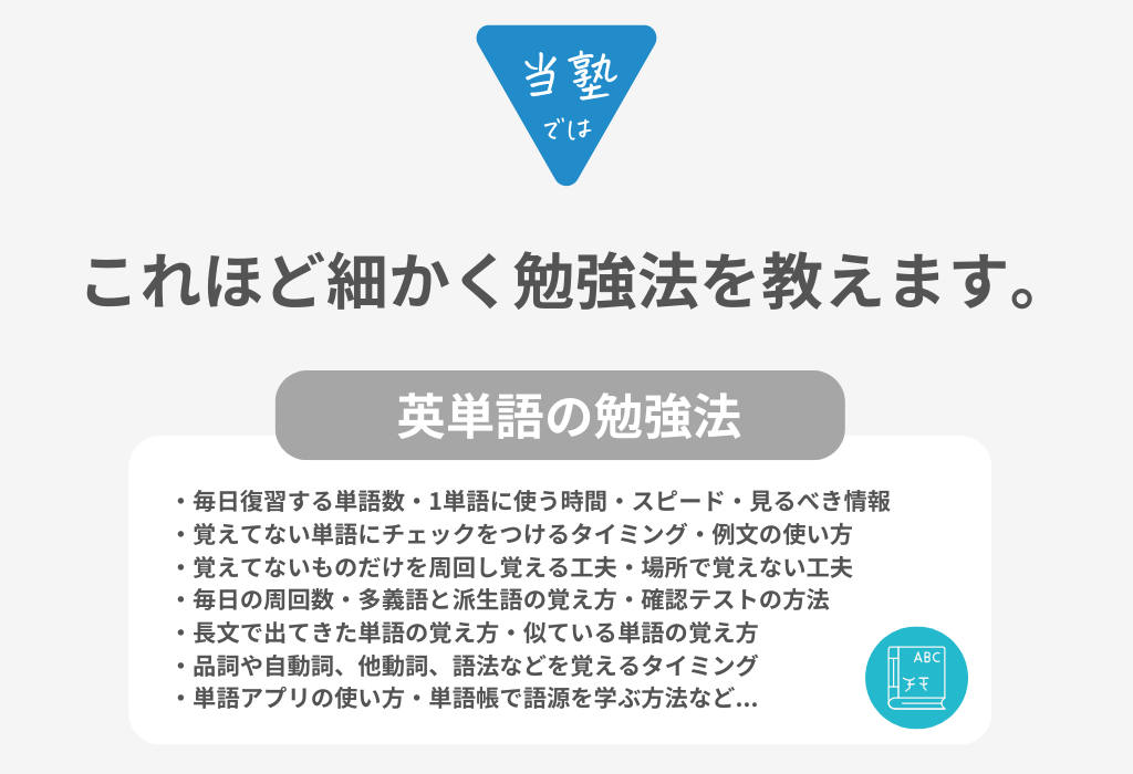 持っているものを使えます。そして今後使いたい参考書などがあればそれを積極的に使用していきます。某有名塾では確認テストなどの兼ね合いの都合上単語帳を決められたりしますが、そう言ったことは致しません。