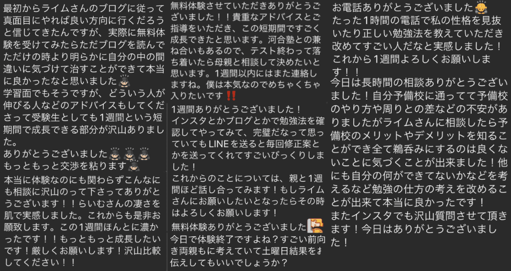 できます。いつもLINEでやり取りをするので、参考書の該当部分の写真を送ってもらい、それについて解説や指導をしています。