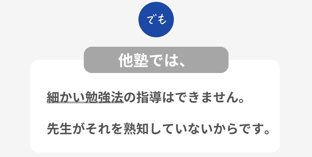 基本t系にはありません。参考書を読めば事足りるからです。参考書を読んでもわからない時は質問をしてもらったり、その対策を教えます。