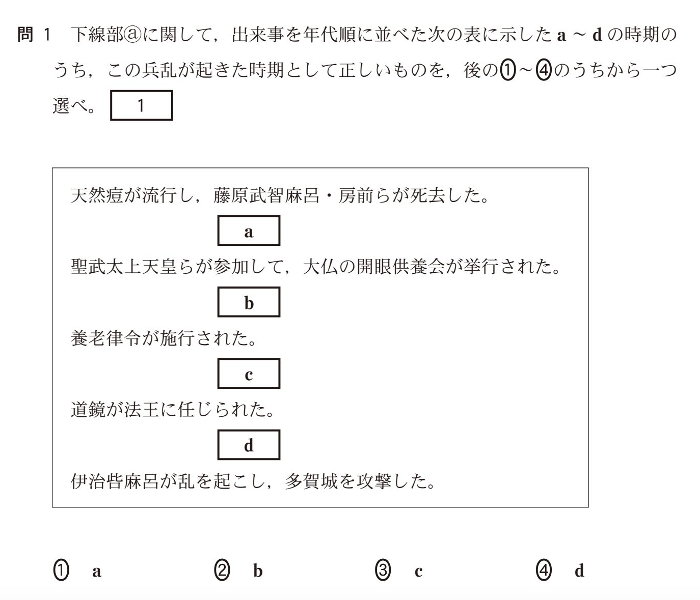まずこれは下線部は藤原仲麻呂の乱(恵美押勝の乱)だとわからないといけません。これは一問一答ですね。用語の暗記が必要な理由です。
