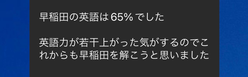 こういった偏差値60までの基準などを先に知っておくことで不安はかなり減ると思います。私はそれを全て調べ切っていたので早稲田合格まで不安はほとんどありませんでした。
