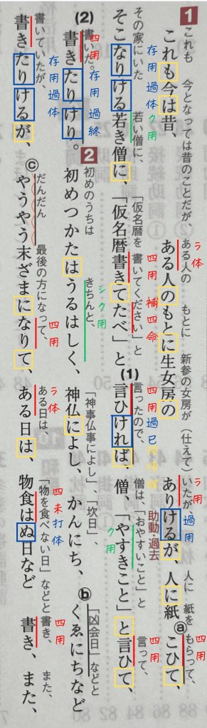 品詞分解を適当にやっていると古文が苦手になります。英語と同じで、品詞分解をしないと文章の意味が正確に分かりません。