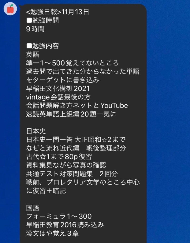 ただこれは受験の初期からもできます。私はそれに気づいたので短期間で伸びました。苦手な単語は紙にまとめて暗記し、単語帳の場所暗記を回避するために単語アプリを極め、全国上位0.04%まで上げました。
