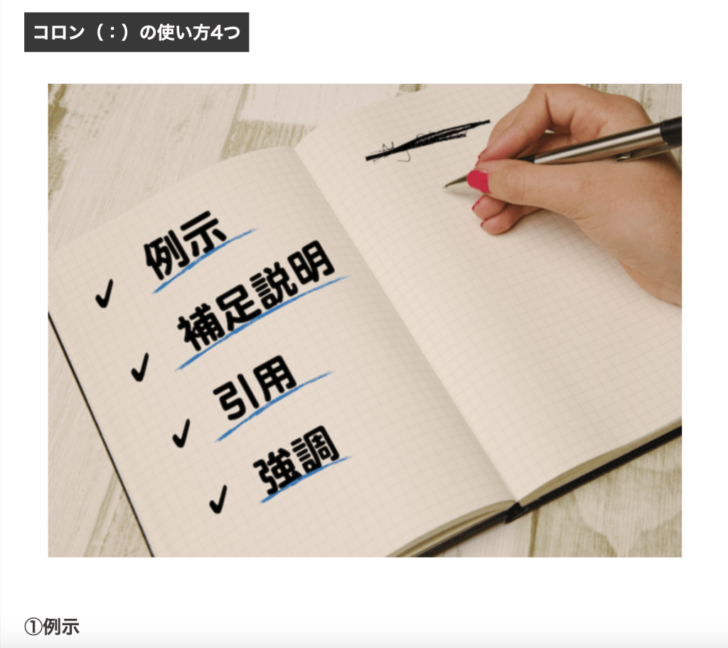「コロン 用法 一覧」と調べ、こういったサイトで気になることを理解しましょう。サイトを見ているときに気になることが浮かべば、さらに深ぼって、完璧に満足するまで調べます。