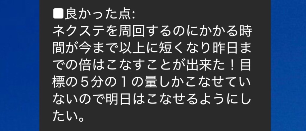 ネクステがめんどくさすぎてやる気が起きなくて、裏ワザ的なやり方を頑張って考えました。教え子もそれでガンガン進めています。