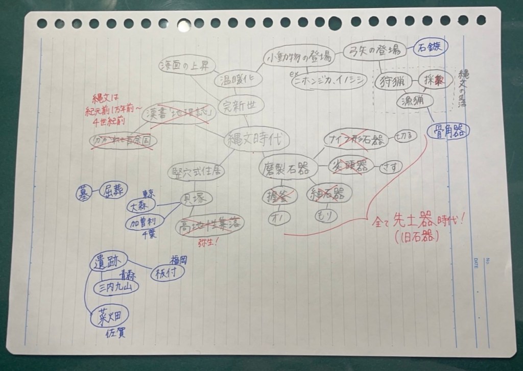 この子は青学に受かった子ですが、一問一答で用語を覚えた後、用語同士の繋がりがなくて問題が解けなかったので、頻繁にマインドマップを使うようになりました。