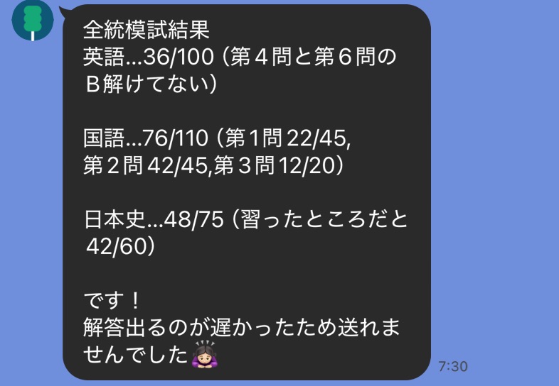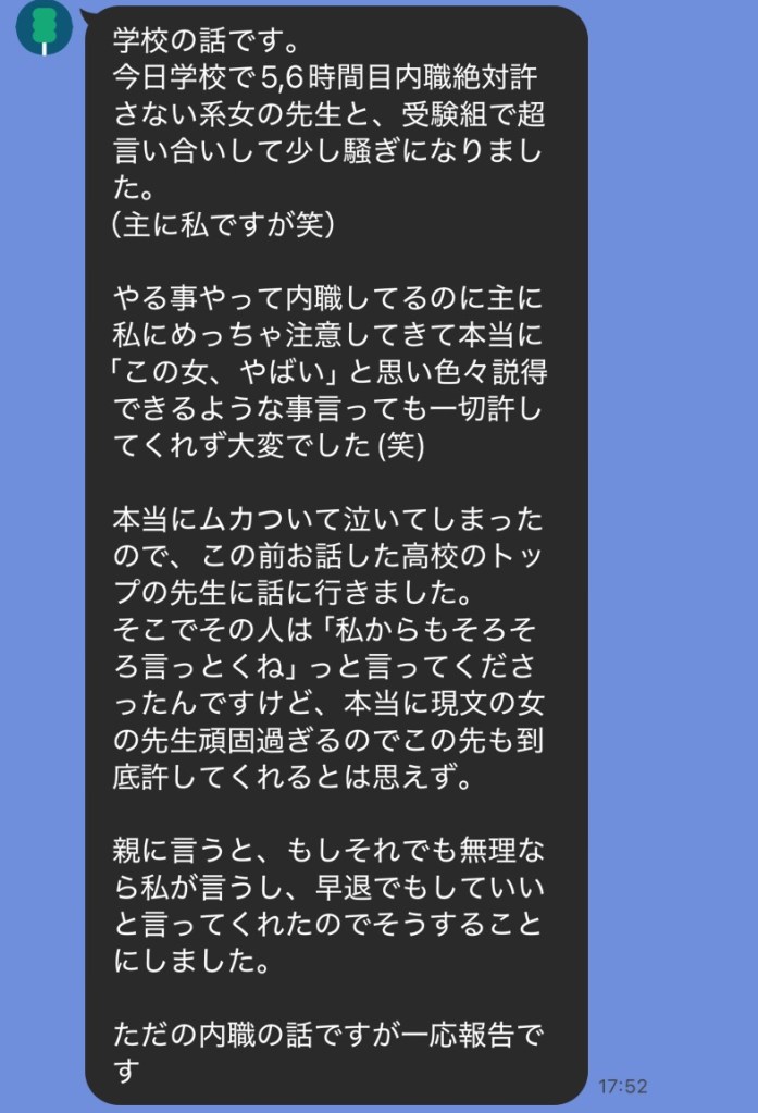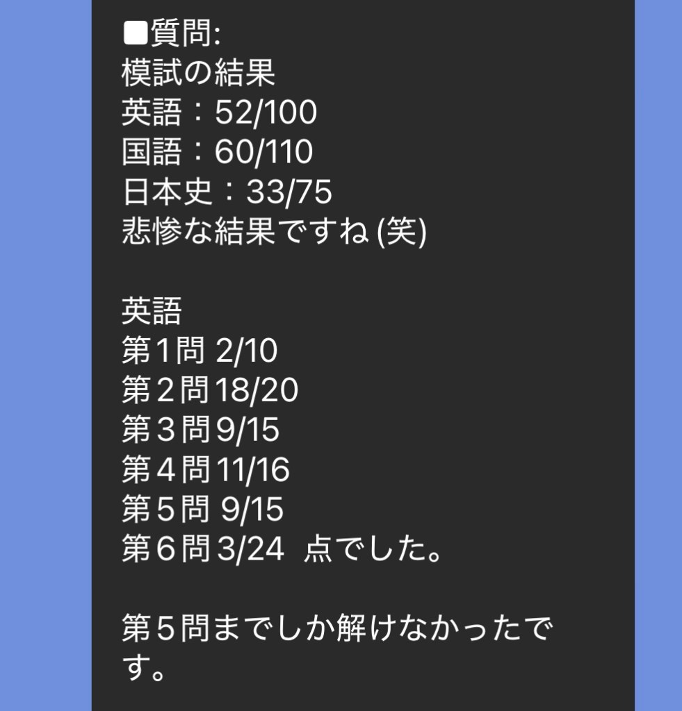 これは私の指導法に問題があったと思うので、かなり反省をしました。彼女のおかげで気づけたことがかなりあったので、私はとても感謝をしています。ですが私の中で心残りがあるので、次の教え子に反省を活かしていきます。