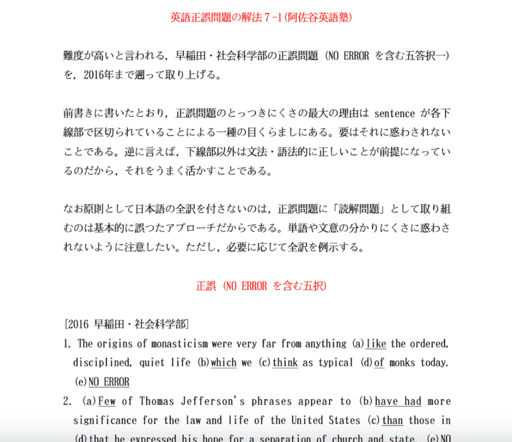 上記の阿佐ヶ谷英語塾というサイトは無料で解ける問題を500題も用意しているのでおすすめです。それを固めたところ、早稲田の社学本番で7割も正解しました。(4割取れればいい方と言われていました)